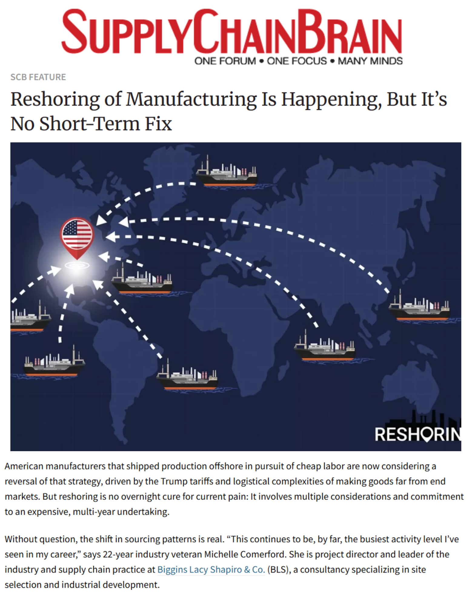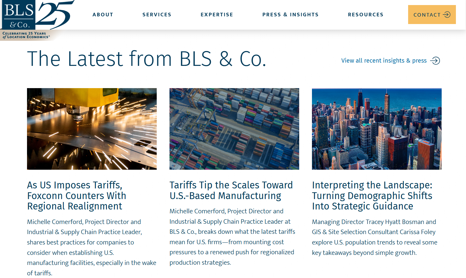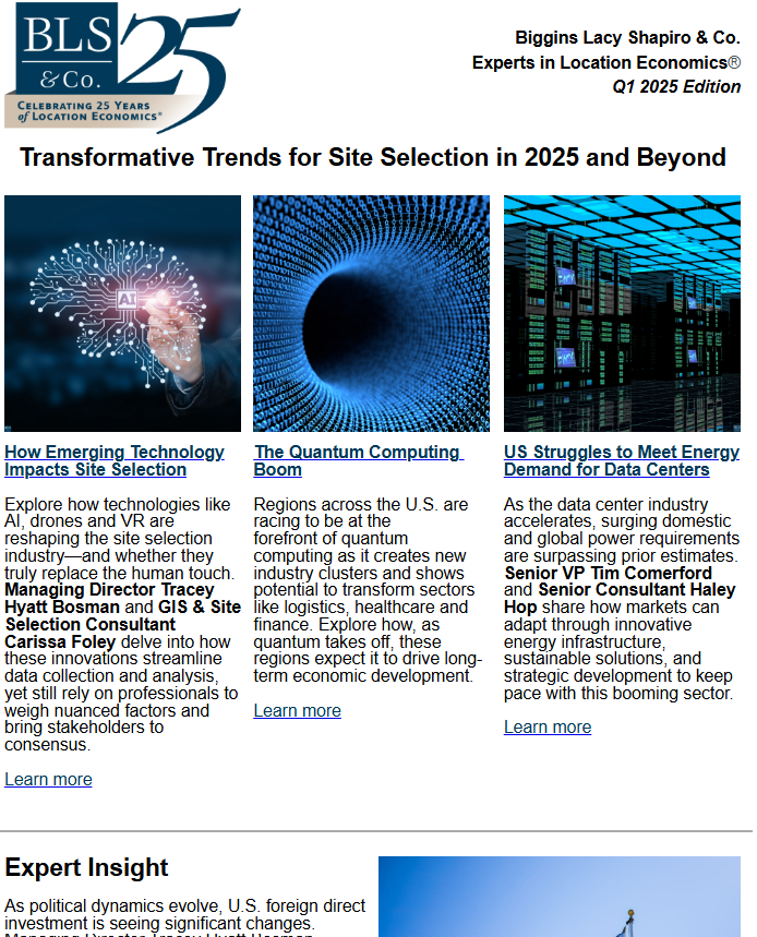 As one of North America’s leading site selection and incentives advisory firms, Biggins Lacy Shapiro & Co. (BLS & Co.) was in need of a cohesive way to showcase its deep expertise in fields ranging from tech to manufacturing to corporate real estate. Though its work is highly confidential, the BLS & Co. team sought to position its leadership favorably across earned and owned channels.