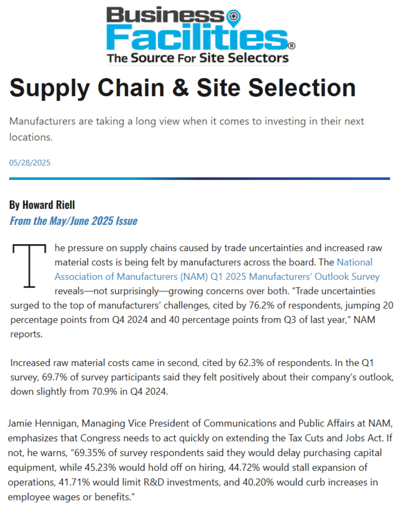 - Media relations: We regularly secure top-tier national and trade press opportunities for the firm’s leadership, focused on the latest trends impacting site selection.