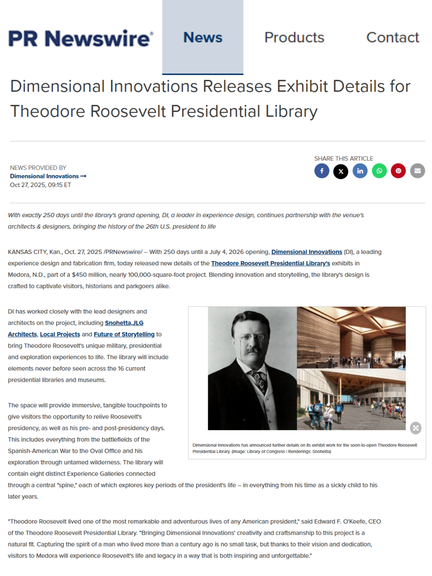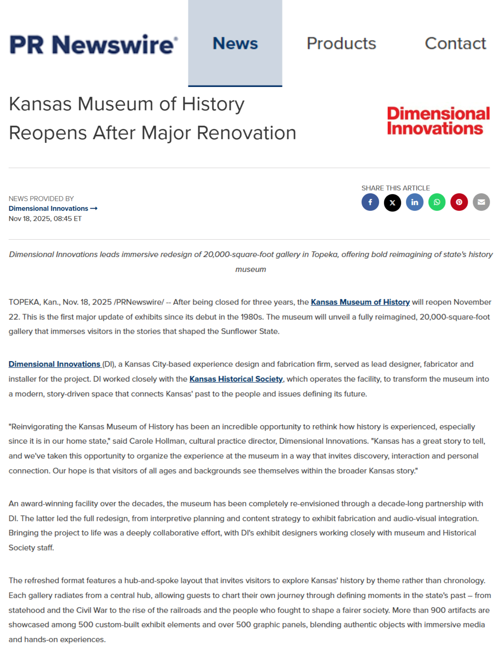 Dimensional Innovations (DI) is a leading U.S. “experience design” firm, creating immersive environments for major brands and institutions nationwide. From sports stadiums to presidential libraries to hospital wings and museums, DI’s work shapes human experiences of all kinds. However, the firm was often left out of media coverage about its projects, as news stories focused on developers, architects or facility owners. To attract attention from reporters and stand out from the competition, DI badly needed a clear narrative and story.